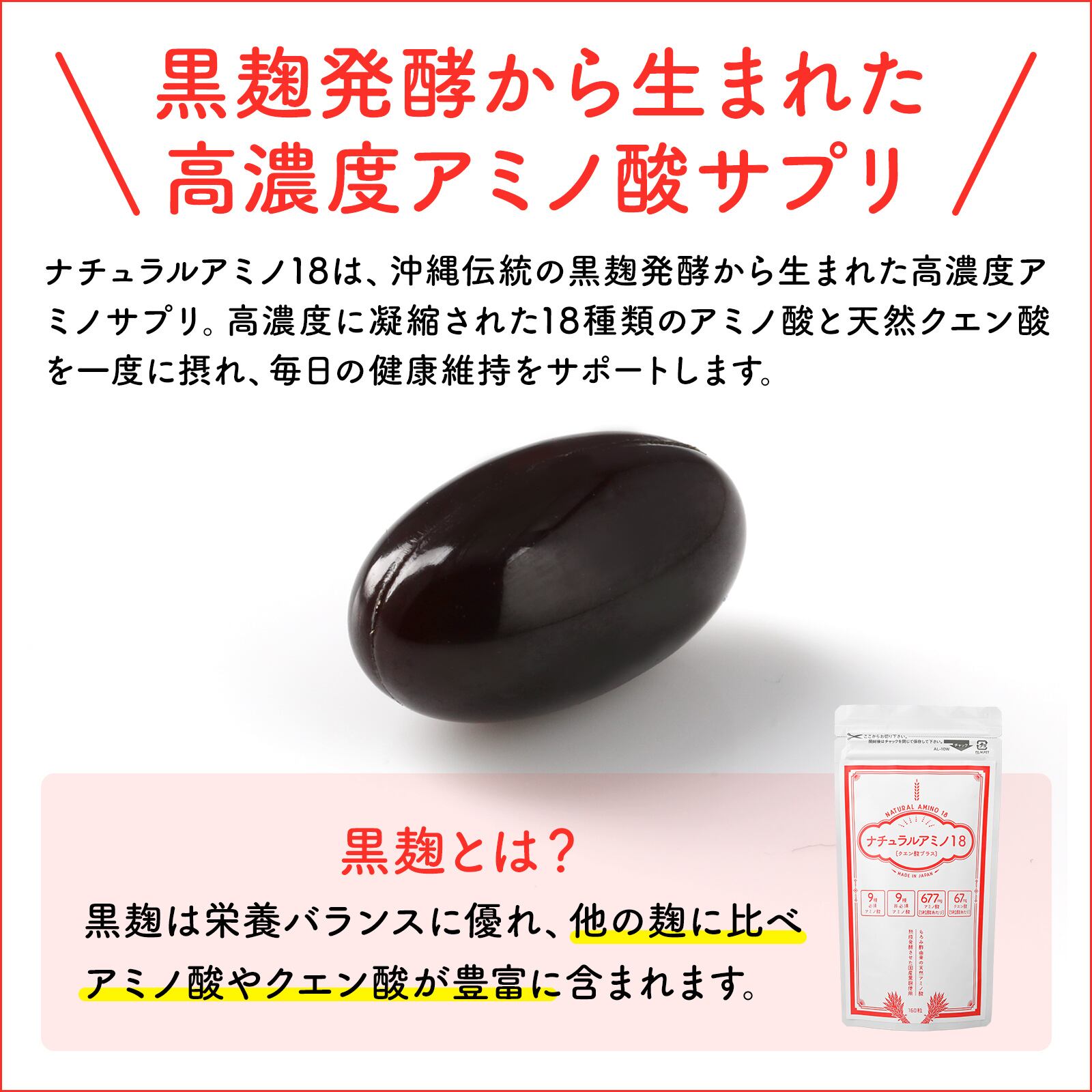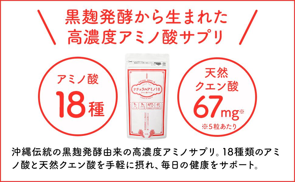 ナチュラルアミノ18は、沖縄独自の黒麹発酵によって生まれたサプリメントです。