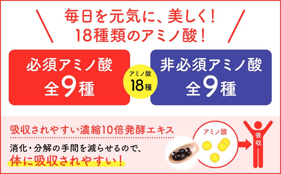 この黒麹発酵から生まれる高濃度に凝縮された18種類のアミノ酸と天然クエン酸を一度に摂れるのが「ナチュラルアミノ18」です。